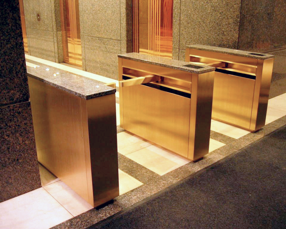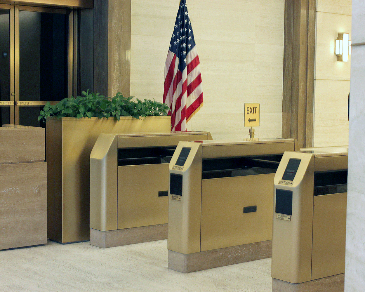 Where high-speed pedestrian throughput and aesthetics are priorities, ES831 barrier arm turnstiles can grant access for up to 60 people per minute per lane and are surfaced to match the interior of any lobby with standard or custom designs and finishes. Compatible with most reader and access control technology, they detect, deter, and report attempts to enter without a valid card or by “tailgating” behind authorized personnel.